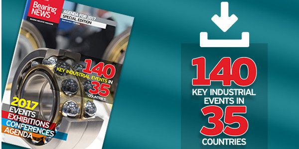 BearingNEWS hat für Sie die 140 wichtigsten Industrie-Events zusammengestellt, die 2017 in 35 verschiedenen Ländern stattfinden. Die vollständige Liste der Veranstaltungen liegt der Dezember-Printausgabe von BearingNEWS bei – zusätzlich werden Backlinks zu den Veranstaltungswebseiten zur Verfügung gestellt.