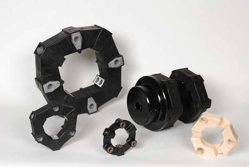 Grundkomponente der LF-Torsionskupplung ist ein äußerst vielseitig einsetzbares Gummi-Element. Zur Leistungsoptimierung ist das Element in verschiedenen Materialien für unterschiedliche Torsionssteifigkeiten und Beständigkeiten erhältlich. Zusätzlich stehen Öl-, Hitze- und korrosionsbeständige Werkstoffe wie Hytrel und Zytel zur Verfügung.