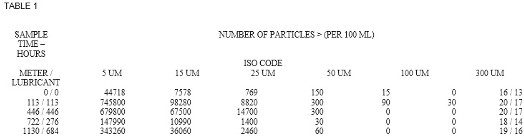 Die Untersuchung eines typischen Lebensdauertest-Schmiermittels, welches einer Standardprüfmaschine entnommen wurde, zeigt, dass der Basisreinheitsgrad ISO 15/12 entspricht. Der Ermüdungslebensdauerfaktor hat dabei einen Wert von 1,0. Ein saubereres Schmiermittel würde eine höhere Lebensdauer ermöglichen, ein stärker kontaminiertes eine geringere.