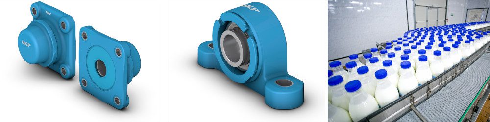 Innovative, blaue Kugellagereinheiten von SKF eröffnen neue Möglichkeiten für das hygienische Design von Lebensmittelproduktionsanlagen. Dank ihrer hohen Zuverlässigkeit trägt die „Blue Range“ der SKF Food Line-Kugellagereinheiten außerdem zur Senkung von Wartungskosten bei und verhilft Lebensmittel- und Getränkeherstellern zu mehr Nachhaltigkeit.