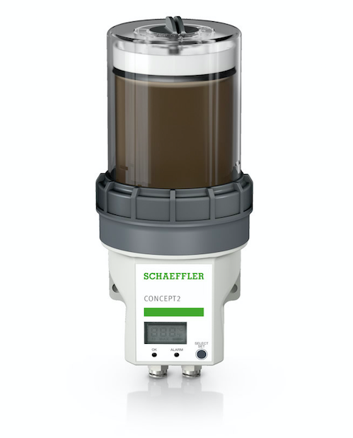 Zu einem effizienten und wirtschaftlichen Schmierungskonzept gehört neben der Wahl des passenden Schmierstoffs auch die Gestaltung der Nachschmierung. Schaeffler hat, passend zu seinem automatischen Schmierstoffgeber CONCEPT2, der bis zu zwei Schmierstellen autark mit Schmierstoff versorgen kann, ein sogenanntes E-Kit, speziell für Elektromotoren, entwickelt. Damit können Betreiber E-Motoren kostengünstig mit dem CONCEPT2 nachrüsten.