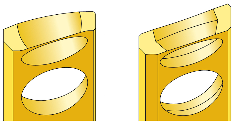 Abgesehen davon hat SKF sowohl für die 25°- als auch die 40°-Varianten den Messingkäfig optimiert: Durch sein festeres Material und seine verbesserte Form (Abb. 5) ist der Käfig nun noch robuster und erlaubt zudem höhere Drehzahlen als zuvor. Trotz dieser Leistungssteigerungen nimmt der Käfig weniger Raum ein als sein Vorgänger, sodass mehr Volumen für den Schmierstoff zur Verfügung steht – und das ermöglicht längere Schmierintervalle. Hinzu kommt, dass die Schwingungs- und Geräuschpegel mit dem neuen Messingkäfig um 15% niedriger ausfallen.
