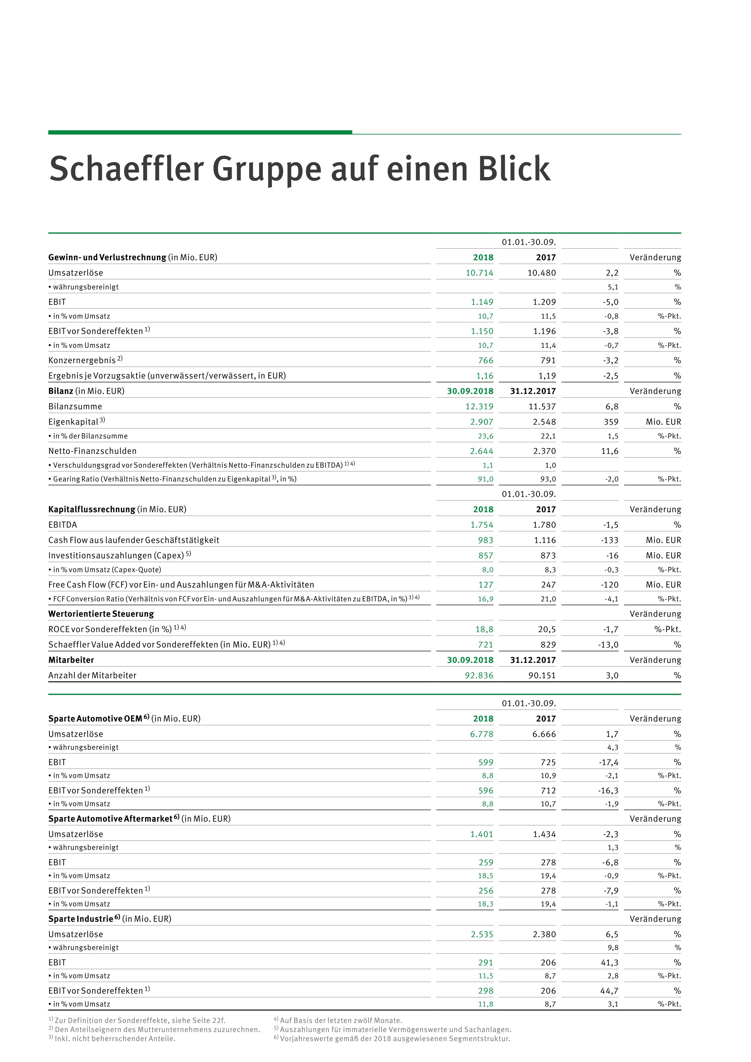 Schaeffler Gruppe auf einen Blick (Zwischenbericht 3. Quartal 2018)