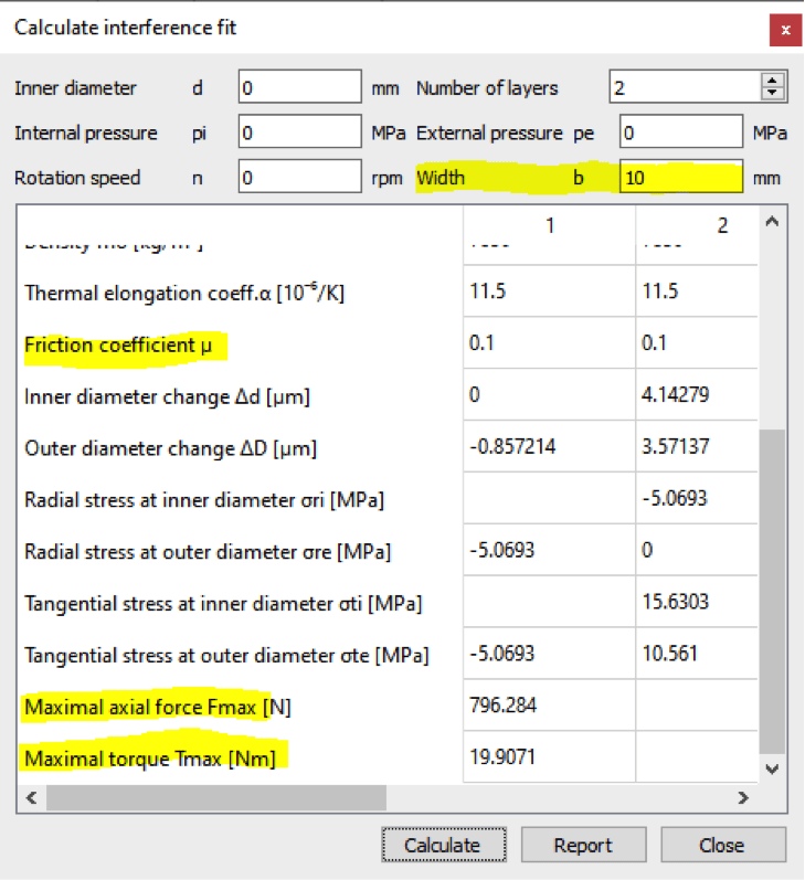 Der allgemeine Passungsrechner wurde um die übertragbaren Axialkräfte und Drehmomente erweitert.